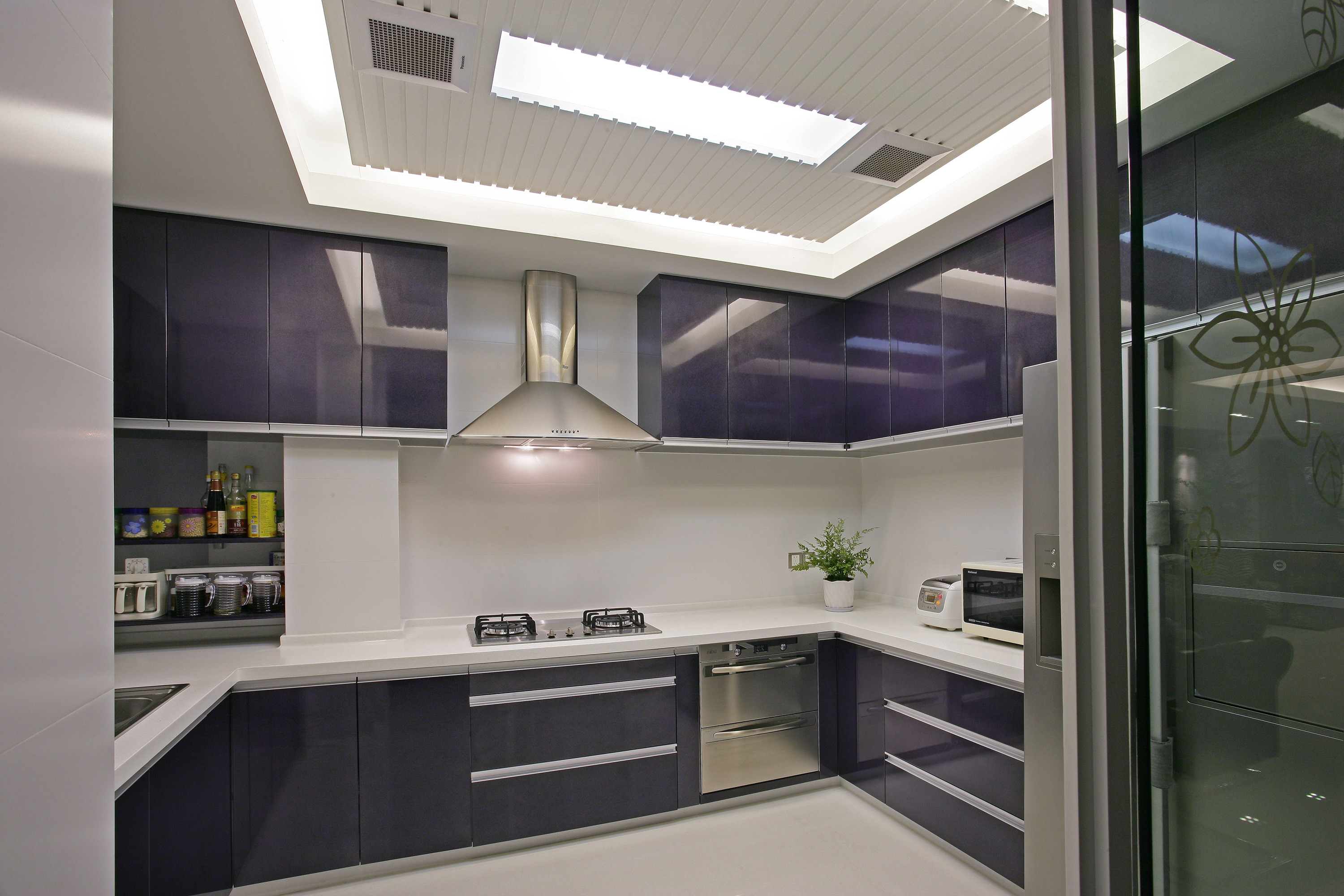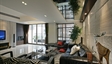 设计师以娴熟的设计手法来表达优雅的涵义,客厅大块的色彩材质运用搭配型体的比例.局部的细节美化,毫不含糊地表现,通过色彩的冷与暖,线条与块面,坚硬与柔和之间的对比来显得空间的典雅和自由并存.多功能房运用带装饰图案点缀的清玻璃幕墙来区分区域,一种整洁明亮的空间感觉.卧室的空间即用不同色彩来做诠释….