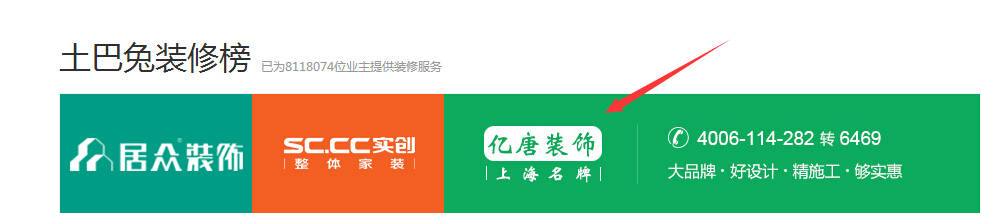 亿唐装饰在土巴兔首页装修榜中、信誉更可靠、装修更放心!