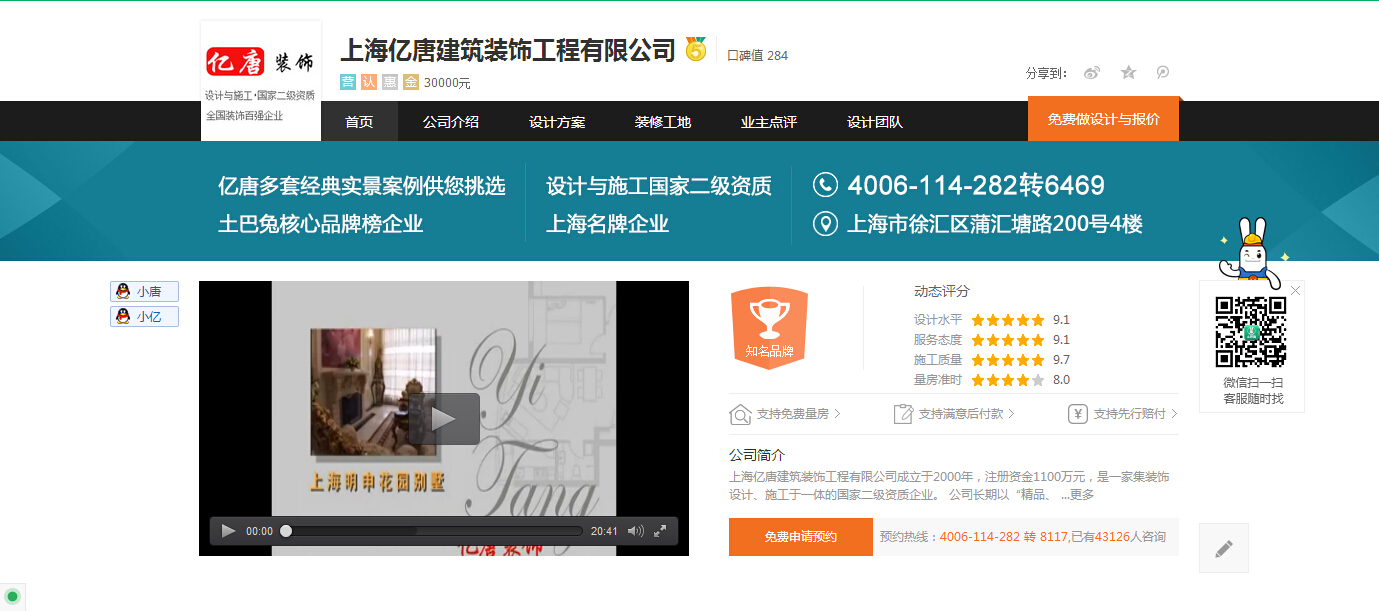 亲们只需在土巴兔首页搜索【亿唐装饰】就会出现亿唐装饰的首页。大家可以重点看到业主点评,当您通过土巴兔这第三方认证平台免费申请量房并且与我们合作的时,我们会严格按照公司的标准同时再按照土巴兔所提出的条件和规范来服务客户,并且您还可以在业主点评处留下对我们非常重要的评论!下面对比来看土巴兔的装修保证吧~