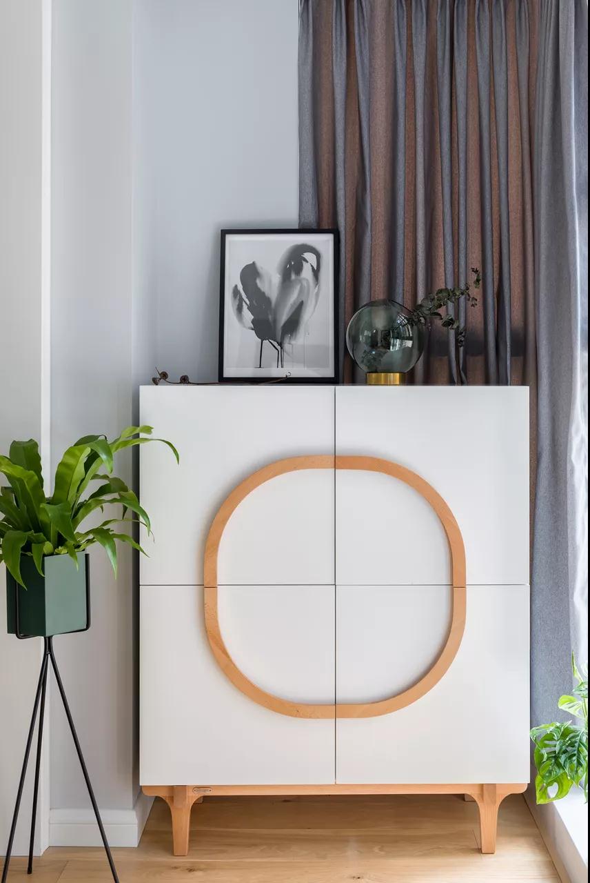▲沙发旁边的白色斗柜,摆着绿植装饰,也显得格外的清新雅致。