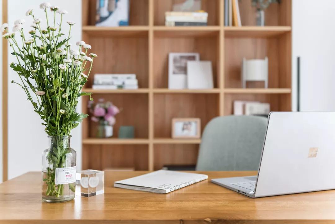 ▲书桌上的插花,也带来了清新舒适的氛围气息。