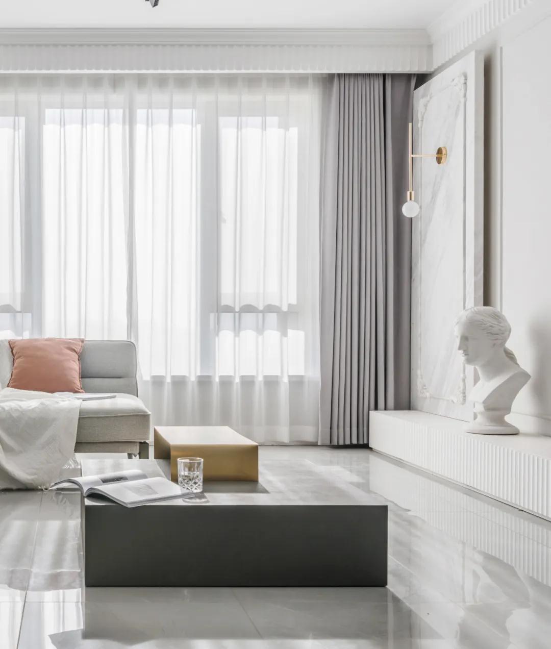 ▲客厅整体以纯净的浅灰色为空间基础,结合中性色的家居布置,带来的是一种舒适轻松的轻盈与惬意感。