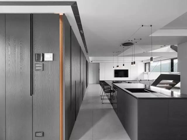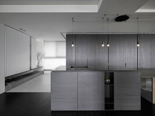 沉静狭长的中岛是开放区的视觉焦点,