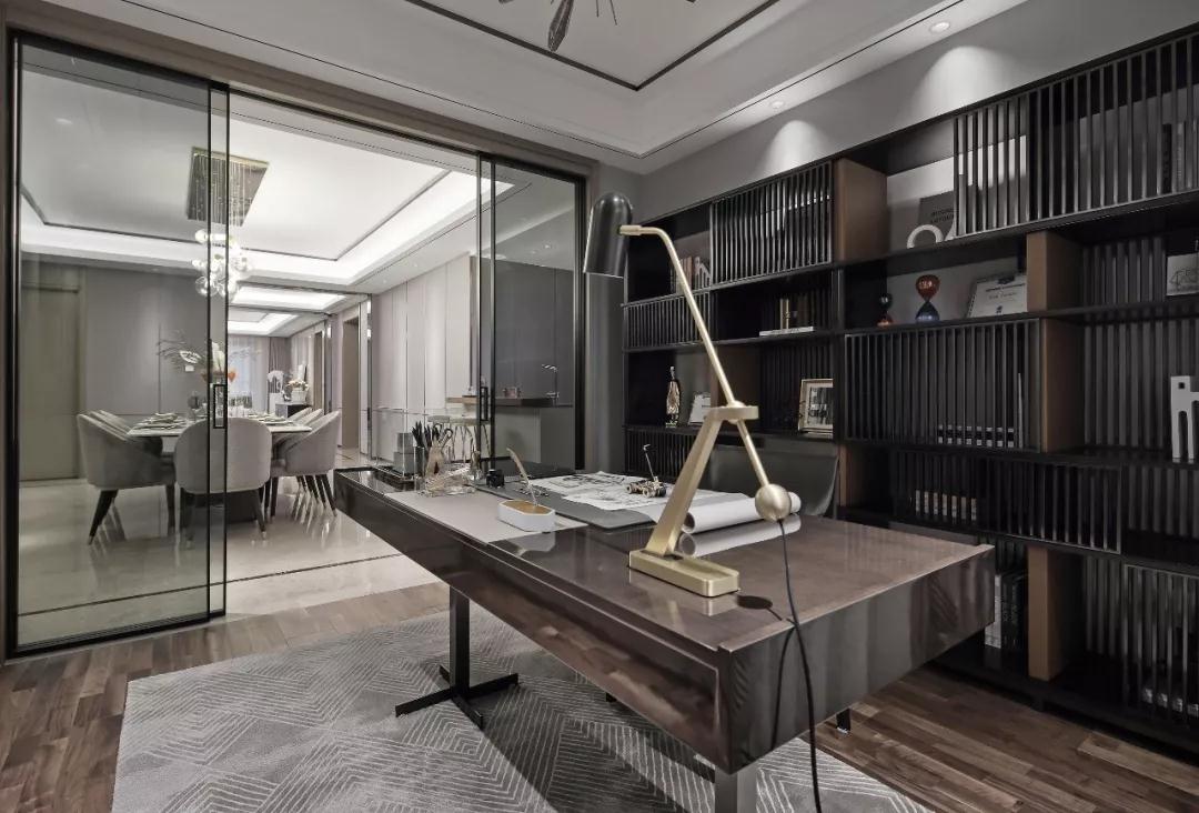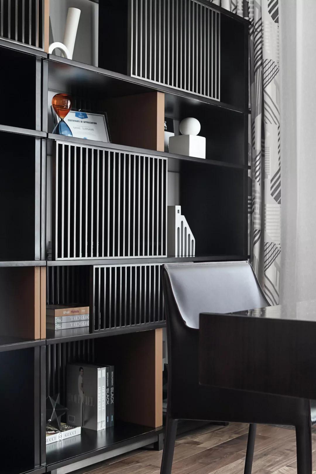 书房,除却满足功能性需求外,亦是提升修养内涵之地,黑白灰现代简约的几何构造,将摩登品质风发挥的淋漓尽致。
