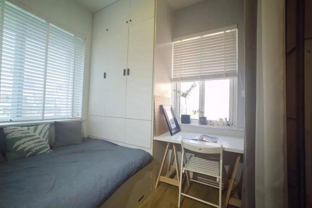 56㎡的小户型,硬是被上海装修设计公司设计师设计出了2室1厅,把原本的阳台也设计成了一个小卧室,非常温馨。