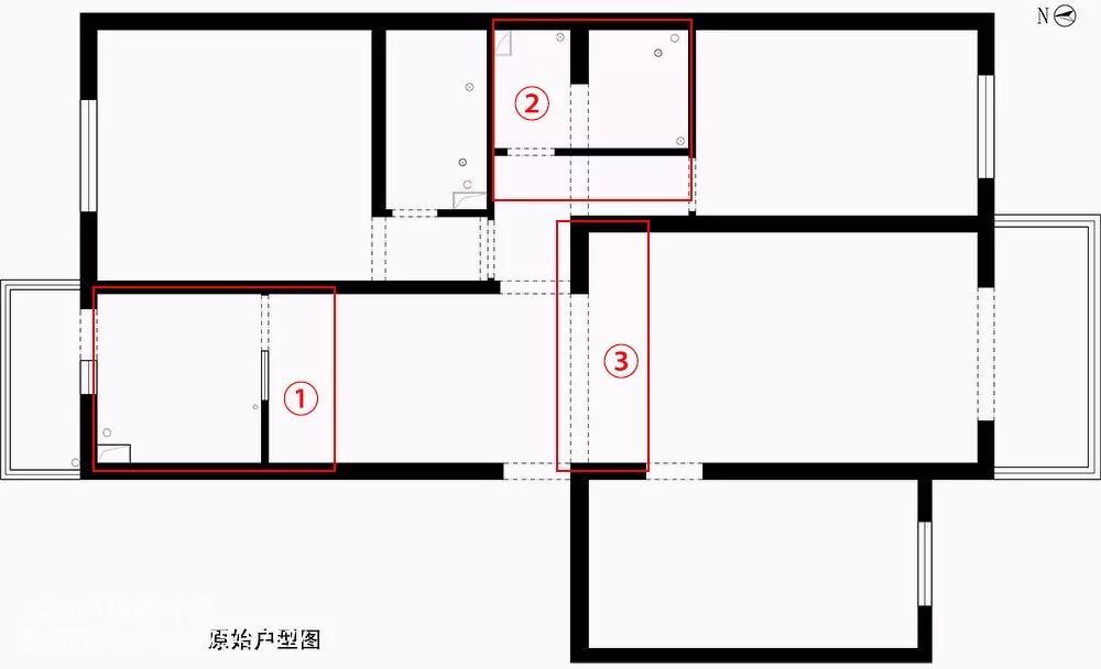 ②原始户型中入户门正对次卫门,在装修中是比较忌讳这一点的;