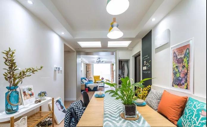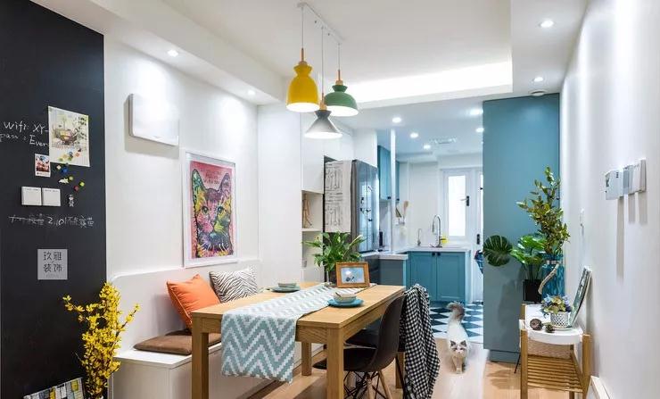 这套115平的北欧三居室,装了开放式厨房和卡座餐厅,仅占地14㎡,很大化地利用了有限的空间。