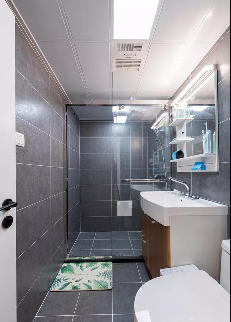 次卫采用直形淋浴区,设计了干湿分区。马桶采用壁挂式,占地面积小,清理更加方便。
