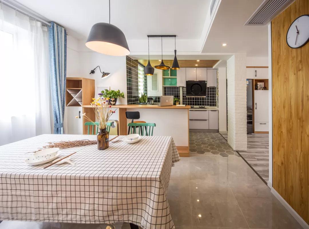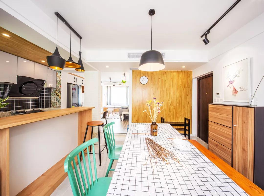 ▲餐厅的文艺餐桌搭配了两张青色温莎椅,餐桌上也是垫着格纹小桌布,整体用餐氛围显得文艺舒适。
