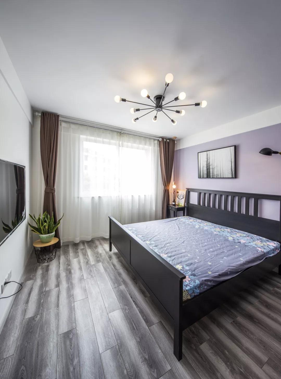 ▲卧室床头墙在浅紫色乳胶漆基础,挂上一副意境的森林装饰画,搭配黑色的床铺与衣柜,呈现出一个成熟端庄的氛围感。
