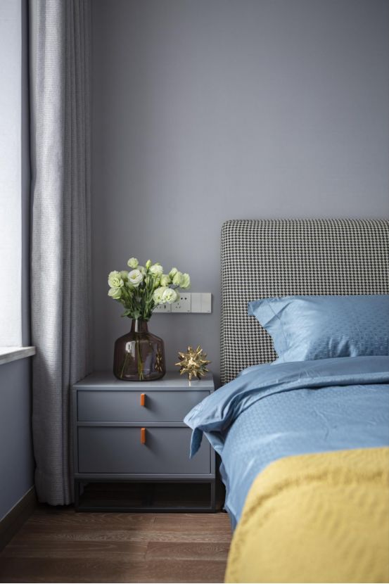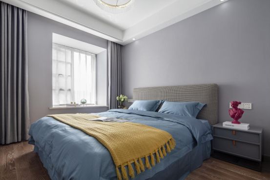 主卧室采用了安静沉稳的色彩,让生活更加简单,让家更加平和,让睡眠更加舒适。